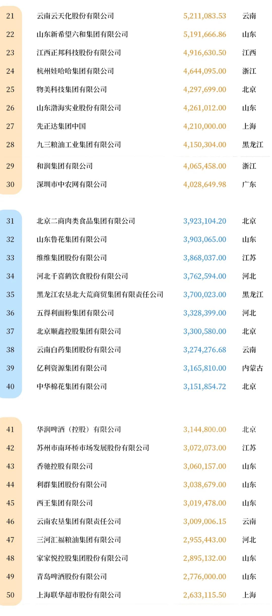 以下为2021农业企业500强前50强(点击左下角“阅读原文”可查看500强名单)