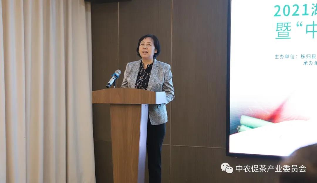 下午2点整,“2021湖北·秭归丝绵茶高质量发展研讨会暨‘中国丝绵茶之乡’授牌仪式”正式开始。研讨会由农业农村部科教司原副巡视员、中国农业国际合作促进会茶产业专家委员会副主任委员李芹主持。秭归县委副书记张学书致欢迎词,致辞中他详细介绍了秭归丝绵茶的发展情况,截至2020年底,全县丝绵茶茶园面积约11.18万亩(占总面积的97.8%),干茶产量6483吨(占总产量的97.96%),综合产值7.4亿元(占总产值的占92.5%),市场主体150多家,涉及全县12个乡镇、95个村,带动11万多人以茶脱贫、因茶致富。