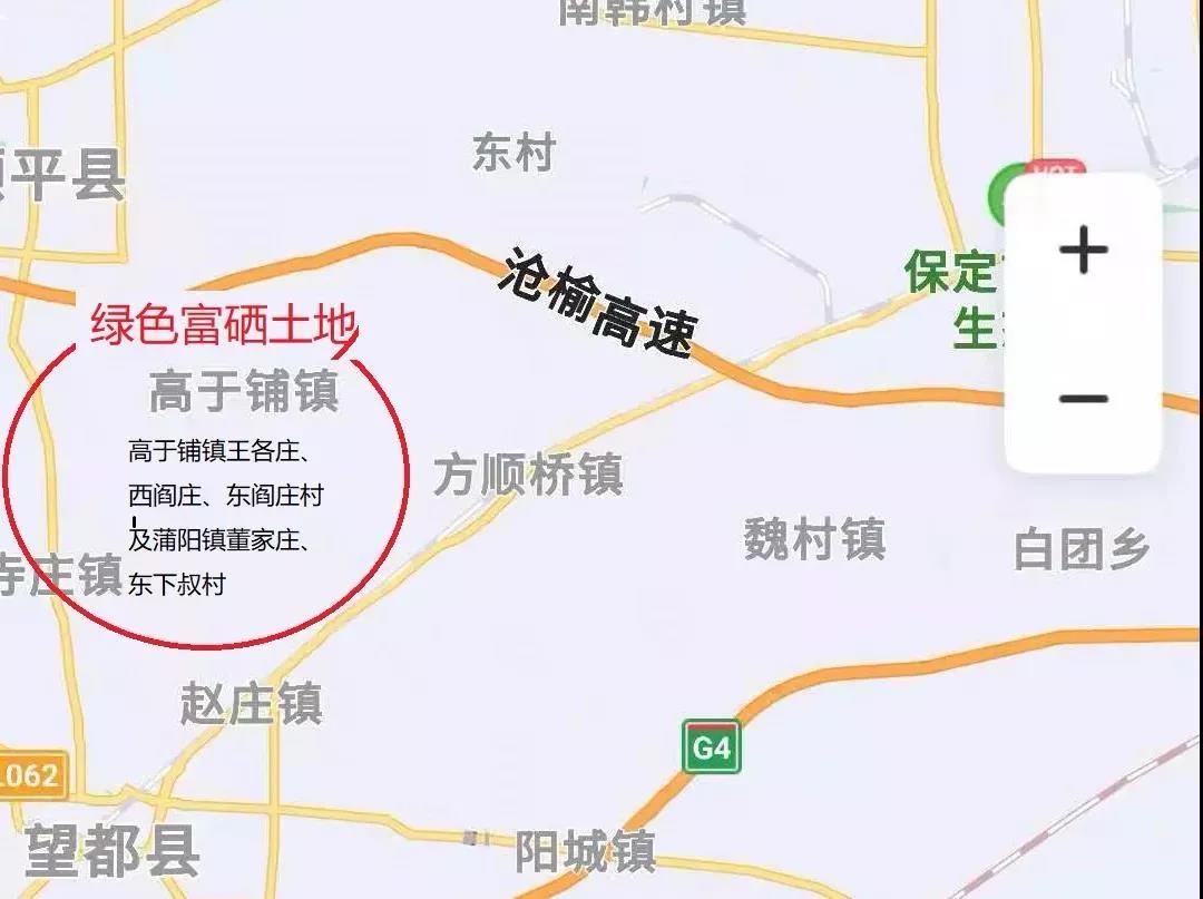 这是河北全省第一个获此认证的天然富硒地块。此地块处在顺平高于铺镇王各庄、西阎庄、东阎庄村及蒲阳镇董家庄、东下叔村,土壤的硒含量平均为0.35mg/Kg。在通过认证的富硒土地中,绝大部分为绿色富硒土地,包括天然富硒无公害土壤82亩。