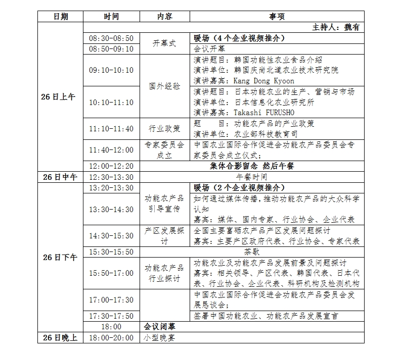 8、 中国农业国际合作促进会功能农产品委员会发展恳谈会。