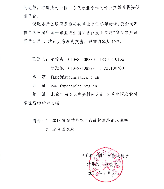 附件:关于组织2018富硒功能农产品品牌发展论坛说明