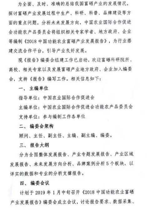 关于编制《2018中国富硒功能农业产业发展报告》的通知