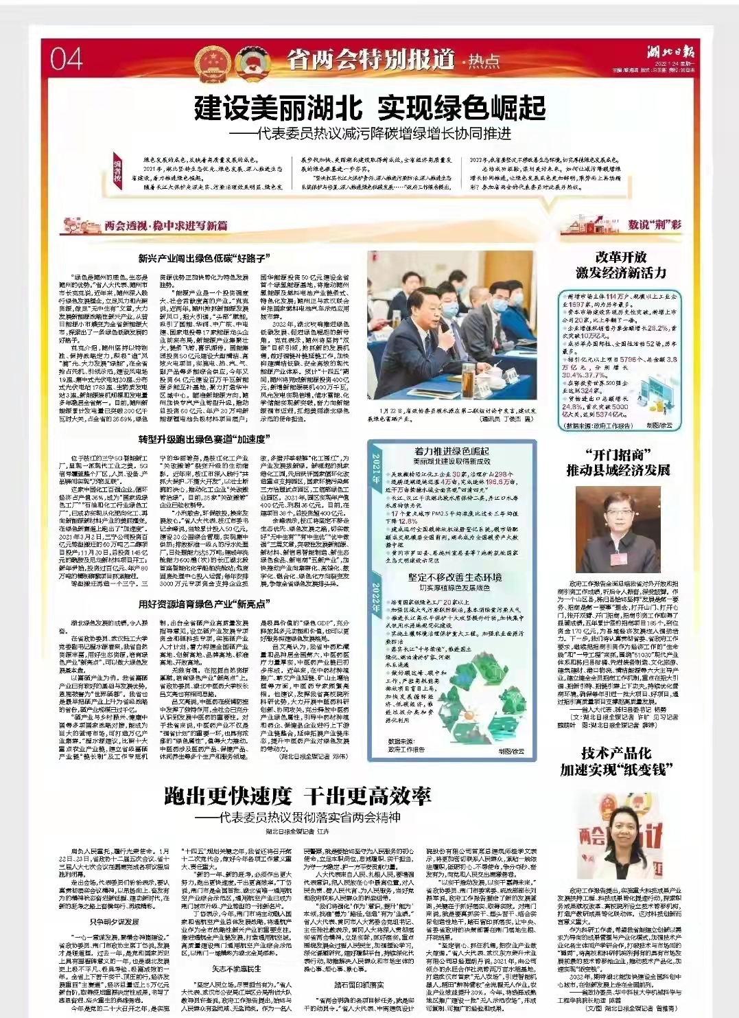 总结成功经验,谋划美好未来。如何让减污降碳增绿增长协同推进,让绿色发展底色更加鲜明,乘势而上再续精彩?参加湖北省两会的代表委员对此展开热议。